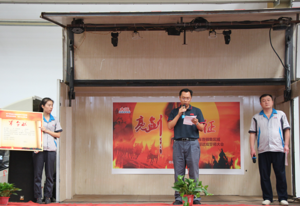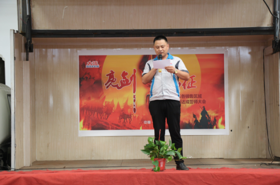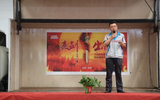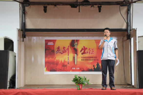 下午14:30,誓師大會(huì)在主持人的宣布中正式拉開(kāi)帷幕。大運(yùn)機(jī)車(chē)銷(xiāo)售副總助理盧傳祥首先上臺(tái),對(duì)本次營(yíng)銷(xiāo)精英誓師大會(huì)的開(kāi)幕作了致辭,他希望我們大運(yùn)機(jī)車(chē)的銷(xiāo)售精英們,能夠在9月份披荊斬棘,乘風(fēng)破浪,達(dá)成目標(biāo)。